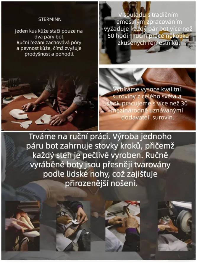 Tyto boty jsou ručně vyrobeny z prvotřídní kůže a nabízejí stylový, odolný, měkký, nepromokavý a prodyšný design.